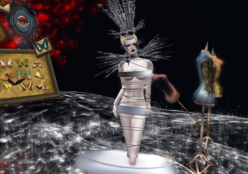 My radar alerted me that Florian Antiesse was close by. I watched her avi rezz..and then walk over to a group of model stands..and pose.